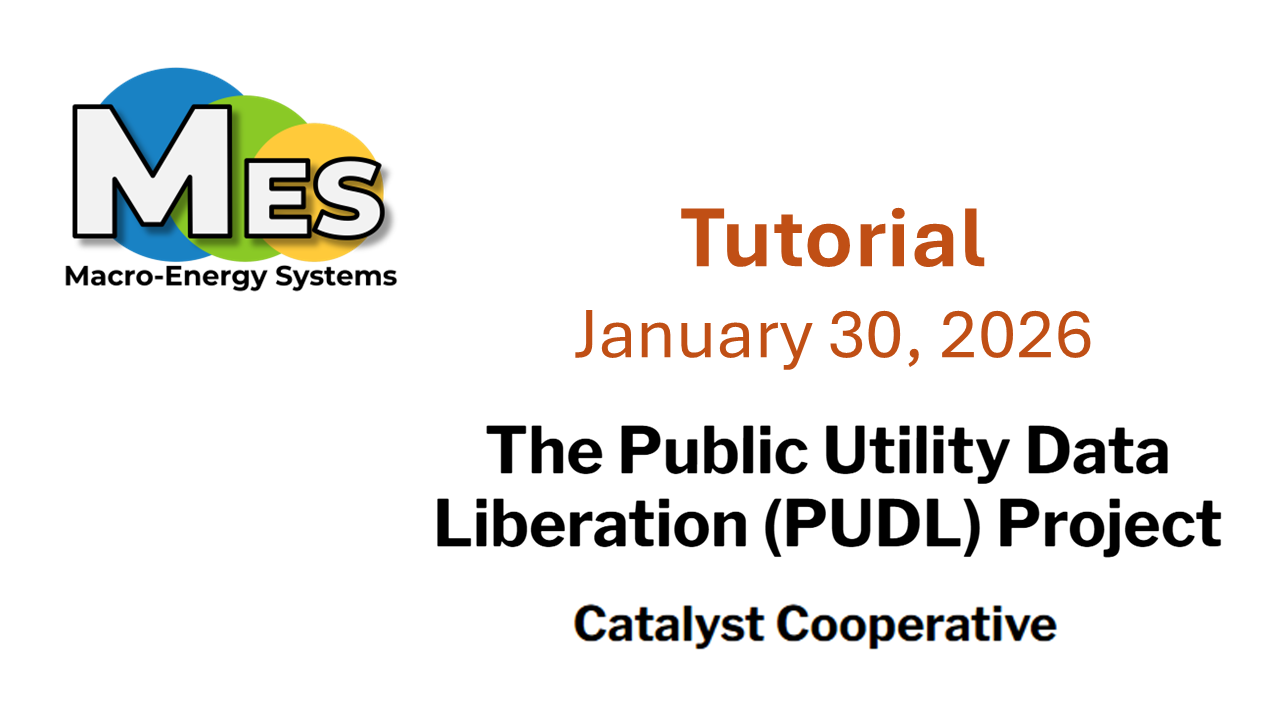 The first M3 meeting will be a hands-on tutorial with folks from the Catalyst Cooperative’s Public Utility Data Liberation (PUDL) project. They will be discussion their key datasets and how to use them. This meeting is targeted towards anyone who is looking for and using public electricity systems data.